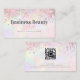 Elegante Tendencia Pastel Holográfico Rosa Beige con Código QR Personalizado Rosa Dorado Brillo Maquillador y Artista de Uñas Tarjeta de Negocios de Belleza Moderna Iridescente