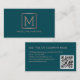 Esta tarjeta de visita de código QR presenta un diseño moderno y elegante de monograma de oro falso rosa en un fondo verde azulado y un código QR en la parte posterior. Personalízalo con tu propio texto.