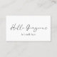 Moderna tarjeta de negocios tipográfica en blanco y negro con un diseño sencillo y mínimo con "Hello Gorgeous" en una tipografía de escritura elegante junto con tu mensaje personalizado. La parte posterior tiene la información de contacto y el código QR opcional. Puede quitar el código QR y cambiar los colores de las fuentes y el fondo en la herramienta de edición de diseño.