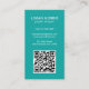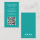 Moderna tarjeta vertical de negocios con un estilo simple y minimalista con tu código QR en la parte delantera y los iconos de los medios sociales en la parte trasera. Todos los elementos de diseño son blancos sobre un fondo verde azulado. Un diseño sencillo y mínimo que se puede personalizar para cualquier profesional de negocios.