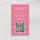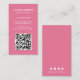 Moderna tarjeta vertical de negocios con un estilo simple y minimalista con tu código QR en la parte delantera y los iconos de los medios sociales en la parte trasera. Todos los elementos de diseño son blancos sobre un fondo de color rosa ondulado. Un diseño sencillo y mínimo que se puede personalizar para cualquier profesional de negocios.