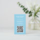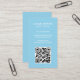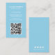 Moderna tarjeta vertical de negocios con un estilo simple y minimalista con tu código QR en la parte delantera y los iconos de los medios sociales en la parte trasera. Todos los elementos de diseño son blancos sobre un fondo azul claro. Un diseño sencillo y mínimo que se puede personalizar para cualquier profesional de negocios.