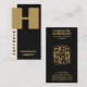 Tarjeta De Visita Código QR vertical de monograma negro mínimo moder