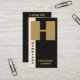 Una tarjeta de visita moderna y profesional que utiliza negro, oro y marfil para un hombre o una mujer. Su inicial en el frente es ser personalizado con su nombre completo o nombre de negocio. Al fondo hay un código QR para agregar una "llamada a la acción". También tu nombre, título, dirección, teléfono, correo electrónico, sitio web e información de medios sociales. Minimalista y profesional para representar su marca o negocio. Totalmente editable: cambie el fondo y el color del texto para reflejar su marca.