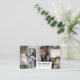 Tarjeta de visita plana para un fotógrafo profesional, donde puede mostrar su trabajo en un impresionante collage de fotos con cuatro fotos verticales en un diseño de collage único. Añade tu nombre y especialidad o título o servicio en la portada en letras negras contra blanco. Añade tu información de contacto en la parte posterior junto con tu código QR para ayudar a tus clientes a acceder a tu red social y sitio web. Una llamativa tarjeta de presentación para un fotógrafo autorizado. Tarjeta de presentación de la plantilla de collage de fotografías personalizada con código QR y su información de contacto.