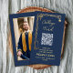 Navy Blue & Gold Medical graduation enclosure card, QR code College Fund Card.