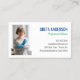 Limpieza de la tarjeta de visita en blanco con texto azul y verde, y acuarela azul con burbujas blancas. Tarjeta de visita de servicio de limpieza personalizada con su logotipo en un lado y una foto de perfil en el otro.