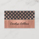 Tarjeta de visita elegante, con los gráficos del oro color de rosa y del modelo de lunar negro, en el top delantero, con una banda de la mirada color de rosa del efecto metalizado de oro a través de la parte inferior y de cubrir la parte posterior de la tarjeta. Personalice el texto para adaptarse a sus necesidades del negocio. Un precioso se destaca la tarjeta grande para cualquier clase de empleo o de negocio.