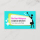 © Socialite Designs. Channeling the bold charm of the swinging '60s, this cleaning services business card bursts with color, character, and a touch of sparkle. The front features a cheerful maid mid-dusting, with whimsical sparkles that say "spotless magic." A vintage-style banner frames your business name in true retro flair, while the reverse side carries that nostalgic vibe forward—perfect for residential or commercial cleaning pros who want to leave a memorable impression. Ideal for branding that’s bold, fun, and totally unforgettable. Colors can be changed to suit your brand.