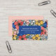 Tarjeta de visita floral colorida con un patrón de flores en coral, rubor, azul y amarillo. Llamando la atención una vibrante tarjeta de negocios con muchas flores.
