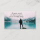 Inspiradoras citas Escrituras tarjetas de visita representan a un hombre mirando una hermosa vista de la montaña y el lago y presentan Biblia Verse Colossian 3:2, "Métete en las cosas de arriba, y no en las cosas terrenales."-