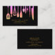 Tarjeta de negocios de restauración limpia para cocineros y maestros de cocina que presentan herramientas de cocina en metalizado dorado colgando en la superficie negra oscura.