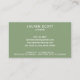 Una tarjeta profesional para una empresa de limpieza o limpieza. La parte delantera de la tarjeta incluye un gráfico de botellas de aerosol, el nombre de la empresa y un código QR. La parte posterior de la tarjeta tiene su nombre, título, detalles de contacto y espacio para un eslogan o descripción de los servicios. Un diseño moderno, elegante y minimalista sobre un fondo verde sabio. ¡Crea tu tarjeta personalizado hoy!