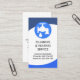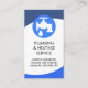 La cubierta tiene un diseño de ondas de curvatura azul. En la parte superior hay un logo de plomero azul que se puede usar. Justo debajo se encuentra el nombre de la empresa y los datos de contacto. Al dorso, en una cubierta blanca, el logotipo está en la parte superior seguido de tu prestigioso nombre, detalles de contacto y un lema para publicitar tus servicios. Una gran tarjeta simple para que los plomeros la usen.
