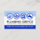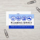 Una cubierta blanca con capas de sombra azul tiene un diseño de icono de herramientas de fontanería azul en la parte superior de la tarjeta. A continuación se muestra el nombre comercial "SERVICIO DE PLUMBING" junto con una lista de posibles servicios que puede cambiar. La franja azul de la base contiene los datos de contacto de tu teléfono. En la parte superior hay un logotipo azul de grifo. A esto le sigue su prestigioso nombre, detalles de contacto y una opción de slogan para publicitar sus servicios. Un gran diseño para los fontaneros. #plomería #plomero #plomería #servicio #plomería #plomería #contratista #tubería #plomería y calefacción #caseros #tubería #pipefitter #grifo #profesional #plomero #zazzlemade