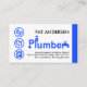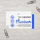 Una portada blanca completa presenta una publicidad creativa azul "Plumber" con un conjunto de iconos azules de plomería a la izquierda. En la parte superior está tu prestigioso nombre con los datos de contacto cerca de la base de la tarjeta. Al dorso, en la parte superior se encuentra el logotipo "home leaking faucet", seguido de su prestigioso nombre, los datos de contacto y una opción de slogan para publicitar sus servicios. Un gran diseño para los fontaneros. #plomeros #plomería #plomería #servicio de fontanería #plomería #plomería #calefacción #caseros #fontanería #contratista #tubería #tubería #pipefitter #faucet