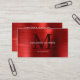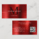 Tarjeta de presentación de Monograma Rojo metálico cepillado con código QR moderno