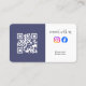 "Connect Future Dusk QR Code Logo Social Media Card" (Tarjeta de presentación de medios sociales) incluye un diseño limpio en un futuro color negro y negro, lo que proporciona un amplio espacio para su logotipo y un código QR de gran importancia y coloridos iconos de medios sociales (Instagram y Facebook), lo que garantiza que los clientes y contactos puedan conectarse fácilmente con usted de forma digital: acceda a su sitio web, portafolio, cuenta de medios sociales o detalles de contacto con un rápido escaneo. Personalizable añadiendo tu logotipo, enlace de código QR, nombre, título profesional, información de contacto, iconos de medios sociales y dirección. Ideal para eventos de trabajo en red, reuniones o interacciones diarias de negocios, esta tarjeta combina profesionalidad y comodidad en un paquete sencillo y elegante.