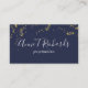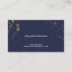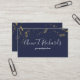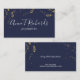 Purpurina falsa salpicada (no purpurina real, sólo una imagen de pequeños puntos de color oro/ocre) con su nombre impreso en un estilo de letra manuscrito, con profesión e información de contacto adicional sobre tarjetas de visita azul marino