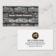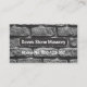 Una pared de ladrillo de cemento tiene una sección de corte en la parte superior que lleva el nombre comercial "Brick & Stone Masonry". Justo debajo están los datos de contacto. Al dorso, en cubierta blanca, en la parte superior hay un logotipo dorado para el paisaje de la casa, seguido de su prestigioso nombre, los detalles de contacto y una opción de subtítulo de eslogan. Una tarjeta para albañilería, construcción, negocios de construcción. #mason #masonrycontratista #ladickwall #constructor contratista #general #contratista #construccion #homeconstruction #handyman #oddjob #building #homerepairs #constructor #zazzlemade