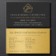 Muestre su negocio de reparaciones o construcción con esta tarjeta de presentación de lujo en metal dorado sobre un fondo negro atrevido.