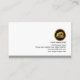Al dorso, los detalles se encuentran en la pared derecha, con un logotipo dorado en la parte superior seguido de su prestigioso nombre, detalles de contacto y una opción de lema para publicitar sus servicios.