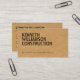 Su nombre o nombre de negocio se muestra en un tipo de letra negrita y estilo de galería de símbolos en el fondo de un tablero de partículas para esta plantilla de tarjeta de empresa de la construcción o del constructor. La estética se lleva sobre la parte posterior de la tarjeta. © 1201AM CREATIVE