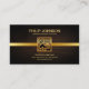 Un fondo de madera del grano de la madera simple acentuado por una ilustración suave. En el centro es un falso adorno del oro de un paisaje casero con una raya del oro que corre a través de la cara. Su nombre y cargo prestigiosos mienten en el top. Cerca de la base es el nombre comercial y entra en contacto con los detalles.