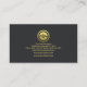 En la parte superior, en una cubierta gris oscura, se encuentran los detalles. En la parte superior está el logo dorado, los detalles de contacto y dos opciones de eslogan.