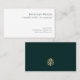 Dé una impresión duradera con nuestras tarjetas de presentación de contabilidad profesional simple que presentan una tipografía clásica sobre un fondo blanco limpio. En la parte trasera hay un emblema geométrico de oro impactante sobre un rico fondo verde esmeralda oscuro. Perfecto para cualquier profesional de negocios que busca una impresión duradera.