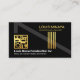 La cubierta negra tiene un techo con una chimenea de líneas verticales doradas. Justo encima de la chimenea de oro está tu prestigioso nombre y título de trabajo en oro falso. Hacia la izquierda hay un logotipo dorado "handyman tools window" que puedes usar. ; Los iconos pueden representar algunos de los servicios que ofrece. Por ejemplo, el grifo es para la fontanería, el martillo puede ser para reparaciones en el hogar, remodelación, el enchufe de alimentación para electricidad y los pinceles para remodelación de pintura en el hogar. Sus usos se dejan a su propia interpretación. Justo debajo de este logotipo se encuentra el nombre de negocio y los datos de contacto. Al dorso, el logotipo dorado está en la parte superior, seguido de tu prestigioso nombre, detalles de contacto y una opción de subtítulo de slogan para publicitar tus servicios. Una gran tarjeta elegante para todos, especialmente para reparación de casas, negocios de techos, etc.