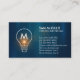 La tarjeta de negocios Monograma Electrician Electrical Contractor incluye un icono de bombilla sobre una textura metálica falsa azul. Perfecto para electricidad, electricidad, contratista eléctrico, electricidad, contratista, artesano, reparación de casas, reparación de casas.