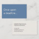 A modern, minimalist business card perfect for copywriters and freelance writers. The front features a soft blue background with the humorous phrase "Once upon a deadline..." in off-white text. The reverse has an off-white background with dark charcoal text and space for your contact details. All text on the card is fully editable.