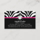Tarjeta De Visita Cordón y diamante rosados del estampado de zebra