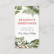 Verde invernal en acuarela en gran formato con un audaz "Saludos de la temporada" en rojo, el nombre de la empresa en escritura superpuesta en tarjeta blanca. Agrega agradecimiento personalizado y año en el otro lado.