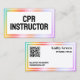 Stand out as a trusted CPR Instructor with this custom Vcard QR business card — designed for CPR trainers, AHA instructors, BLS or first aid trainers, and EMTs in critical care or emergency medical fields. Its colorful, hologram-inspired design adds a modern edge while the scannable QR code lets students and employers save your info instantly. Professional, practical, and built for lifesavers who mean business.