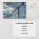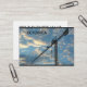 La tarjeta de visita muestra una grúa en un sitio con un cielo azul y nubes como fondo