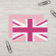 Cree sus propias tarjetas de personalizado personalizadas eligiendo el color de fondo detrás de las franjas magenta y blanca y el patrón cruzado de la bandera de la Unión. Diseño de estilo Bandera del Reino Unido.