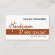Design features a creative "Handyman" signage that blends in with a rectangular brown layer. Here also lies your phone contact with a slogan caption option you can change. Your prestigious name can be found at the top right corner.