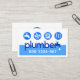 A white and blue layered cover features a creative "plumber" design with a leaking faucet. Over at the top are the plumbers' icon logos you can use with the contact details near the base.
