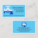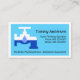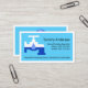A blue cover is encapsulated by a white rectangular frame. It features a creative "leaking faucet" icon. At the top is your prestigious name followed by the contact details with a slogan caption you can change at the base of the card.