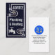 A dark blue cover features a faux silver plumbing pipes border design. Your prestigious name is over at the top whilst the business name is near the center of the card.