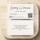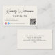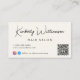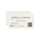 tarjeta de presentación de crema de moda con el nombre o marca de su empresa en un guión elegante y un tipo de negocio con letras sencillas y modernas. Ingresa la dirección URL de tu sitio web para crear un código QR para que clientes y clientes busquen una lista de tus productos, servicios, horas, etc., y agrega tus datos de usuario de instagram y facebook para que los clientes te sigan en las redes sociales. Puede agregar información adicional en la parte posterior o dejar en blanco.