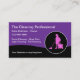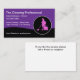 Esta audaz plantilla de diseño de tarjetas de visita de servicio de limpieza de color rosa y morado brillante se crea en negrita en color rosa cálido sobre negro para un diseño llamativo para todo aquel que realice limpieza residencial o comercial.