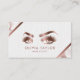 Esta moderna y elegante tarjeta de visita con los ojos de oro rosa (pestañas y cejas) purpurinas dibujados a mano y la textura de mármol es perfecta para artistas de maquillaje, negocios de extensión de pestañas, extensión de latigazos, bloggers de moda, bar de exhalación, salón de belleza... Los detalles metalizados en relieve de este diseño son solo simulados. Este producto no contará con ningún relieve ni capa que creen un efecto metalizado.
