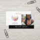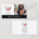 Tarjeta de presentación Esoteric Boho Moon Crystals Feathers Flowers con plantilla fotográfica y fondo blanco. Diseño bohemio acuarela con luna creciente, cuarzo rosa y puntos de cúmulo de cristales de cítricos, rosas rosas rosas, vegetación y plumas blancas. Perfecto para su negocio metafísico, esotérico, spa, terapeuta, sanador energético, clínico y espiritual. Texto listo para tu información. Reemplazar la foto por la suya.