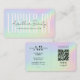 Lazas Brows Makeup Artist Holographic azul pastel púrpura, rosa Tarjeta de negocios moderna con código QR