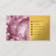 Un bonito diseño con un fondo de cristales de sal rosada y un Relieve metalizado de oro falso. El diseño de moda perfecto para maquilladores, peluquería, pintores de uñas, cuidado de la piel o cualquier otro negocio relacionado con la belleza. Iconos de medios sociales incluidos en este diseño de tarjeta de visita para mostrar todos los detalles de contacto de su empresa. Una forma sencilla y profesional de presentar tu negocio. Personalice sus detalles para crear su propia tarjeta de visita única.