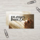 La tarjeta de visita con cruz cristiana y cita inspiradora representa una fotografía de manos rezando en una Biblia abierta. Incluye la leyenda "PRAYER WARRIOR".