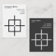 Una plantilla de tarjeta de visita con un círculo cerrado o símbolo "O" en la parte delantera. Nombre de la empresa, tipo de negocio y dirección en el frente con nombre, cargo, telefonía, web y direcciones de correo electrónico en la parte posterior, con un diseño similar en un fondo gris con una repetición del símbolo frontal en blanco. Esta tarjeta también se puede personalizar más.